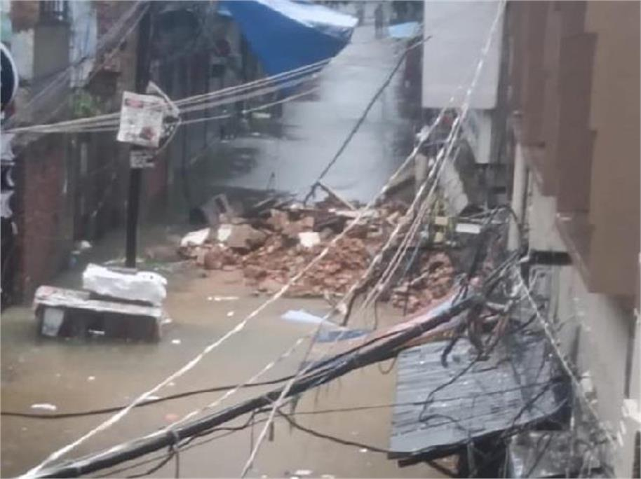 Due to continuous rain since late night, a two-storey dilapidated building collapsed in Baag Wali Gali in the inner area of the city at around 5:30 am on Monday. Due to the collapse of the building, the debris spread all over the road, due to which people had to face a lot of trouble in commuting.
