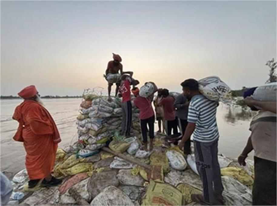 Due to the rapid flow of water in the Sutlej River, work is underway on a war footing to protect the Dhusi Dam near Mandala Chhanna to divert the flow and keep the Dhusi Dam safe.