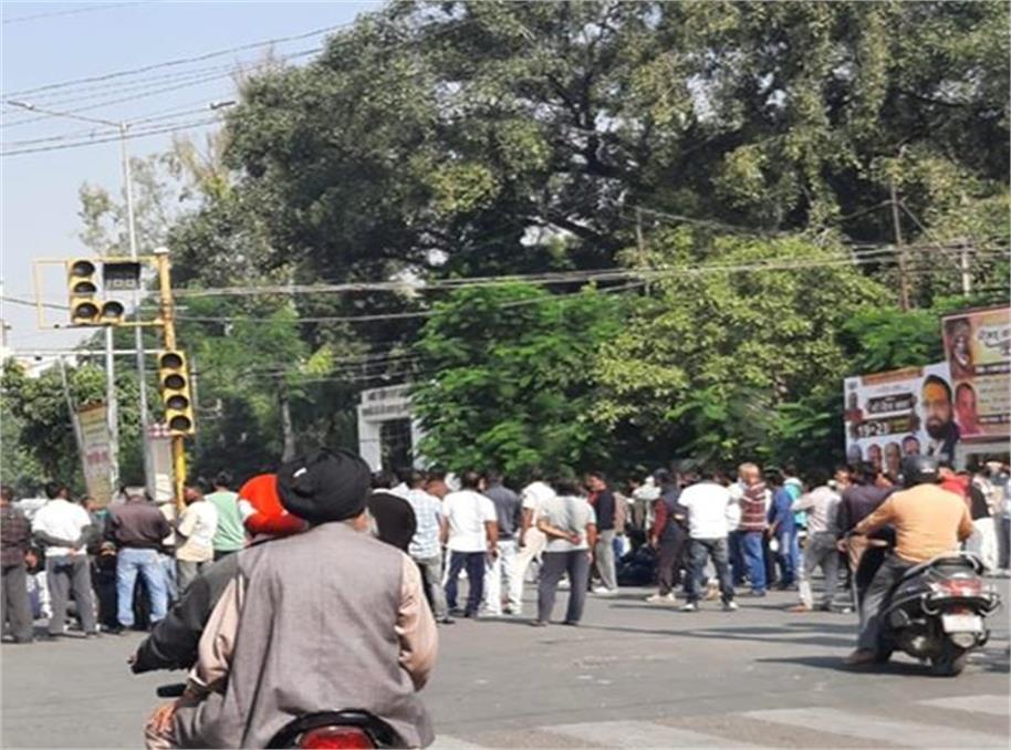 This is important news for the people of Jalandhar. A protest by municipal corporation employees is currently underway at Company Bagh Chowk in the city. The employees have blocked the road in protest against not receiving their salaries for a long time, bringing traffic in the area to a complete standstill.